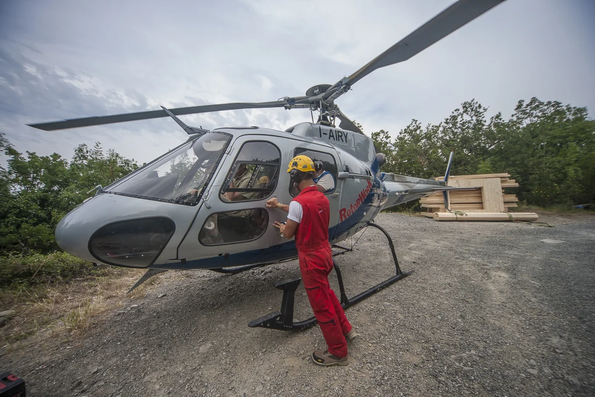 - fare un’ora a piedi ogni volta che devi controllare le macchine e/o sostituire le schede di memoria (anche se qualche volta prendo uno strappo dall’elicottero che vedi sotto)